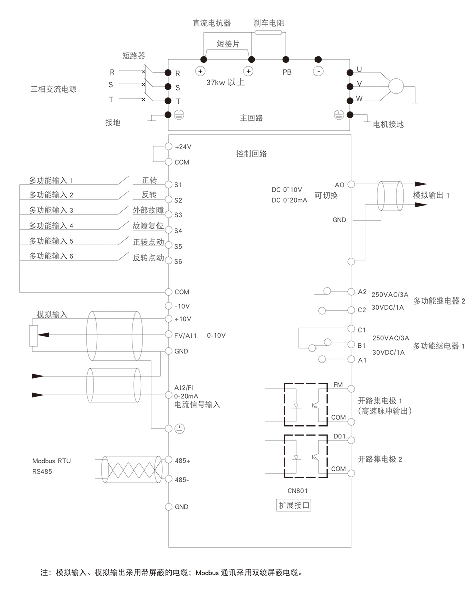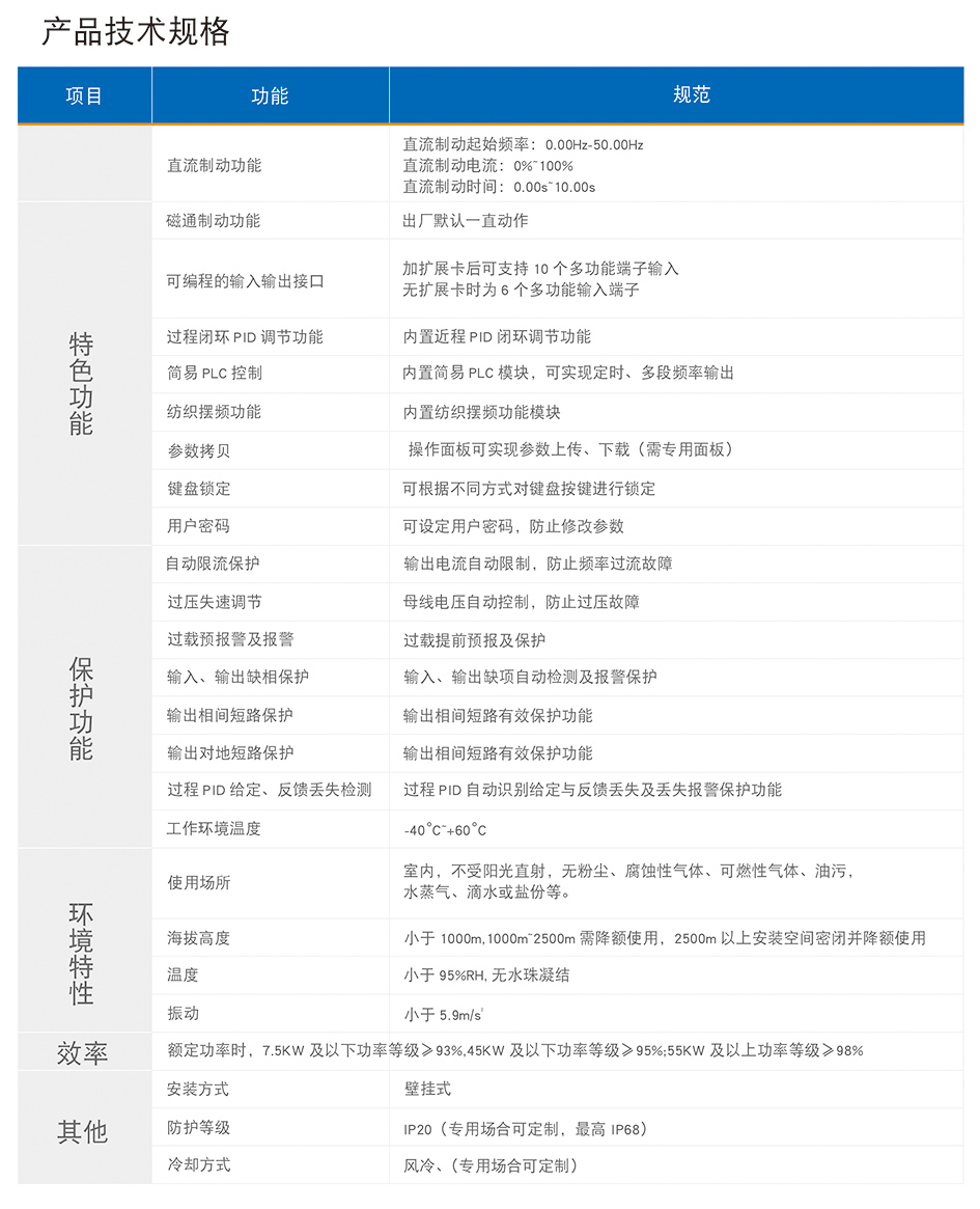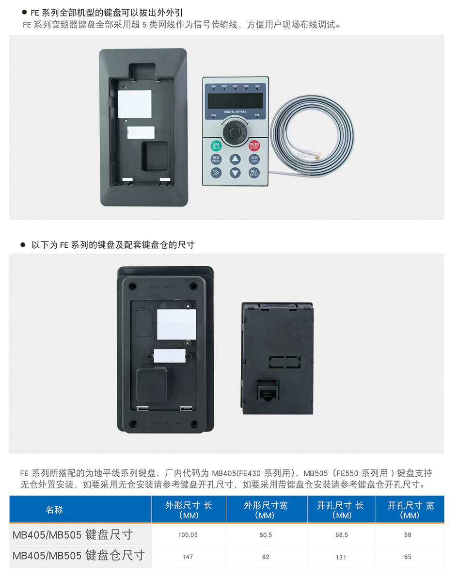 特点为优秀的低频转矩输出同时可以驱动永磁同步电机,多样化的参数调整及高速的动态响应,可以轻松满足对转矩及响应速度有较高要求的场合针对FE550的产品性能特性除通用机型外另衍生出下几种行业专用机型 FE550-LS拉丝专用 FE550-CG 3000HZ高频机 ,FE550-S 注塑机专用机型,FE550-CT 无感永磁同步电机专用机型。